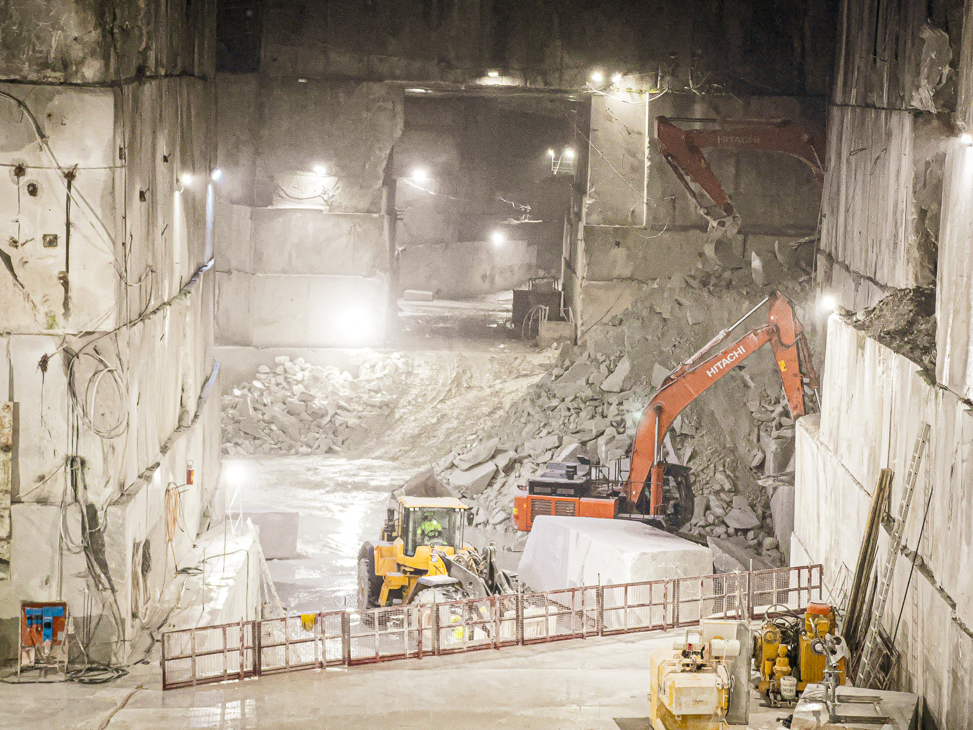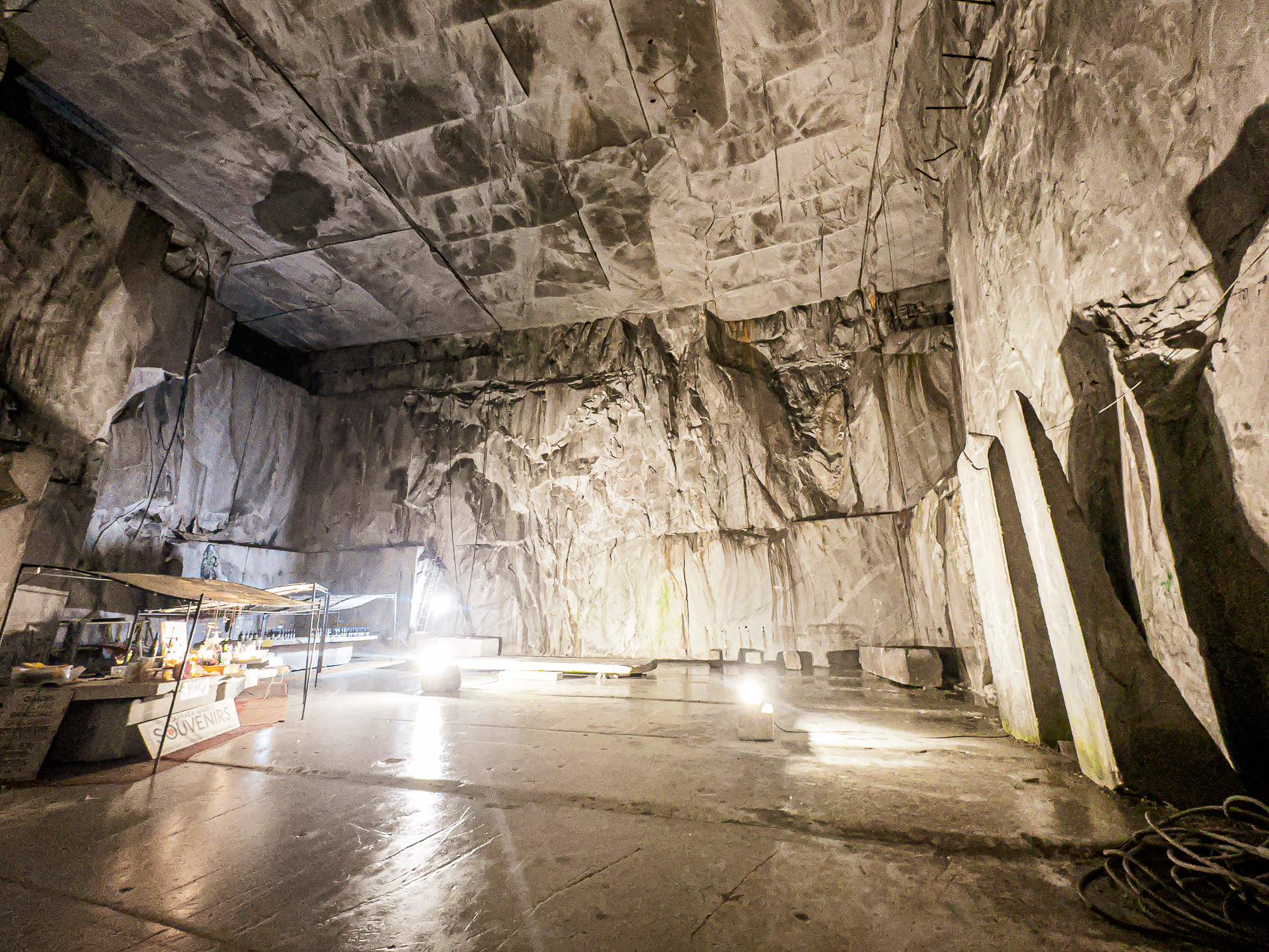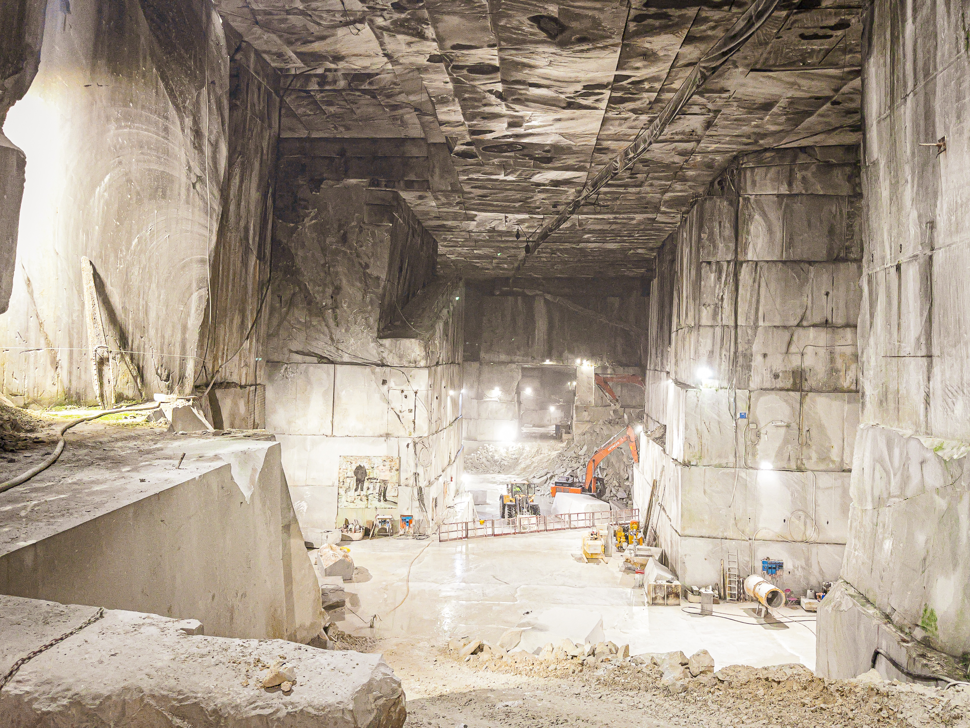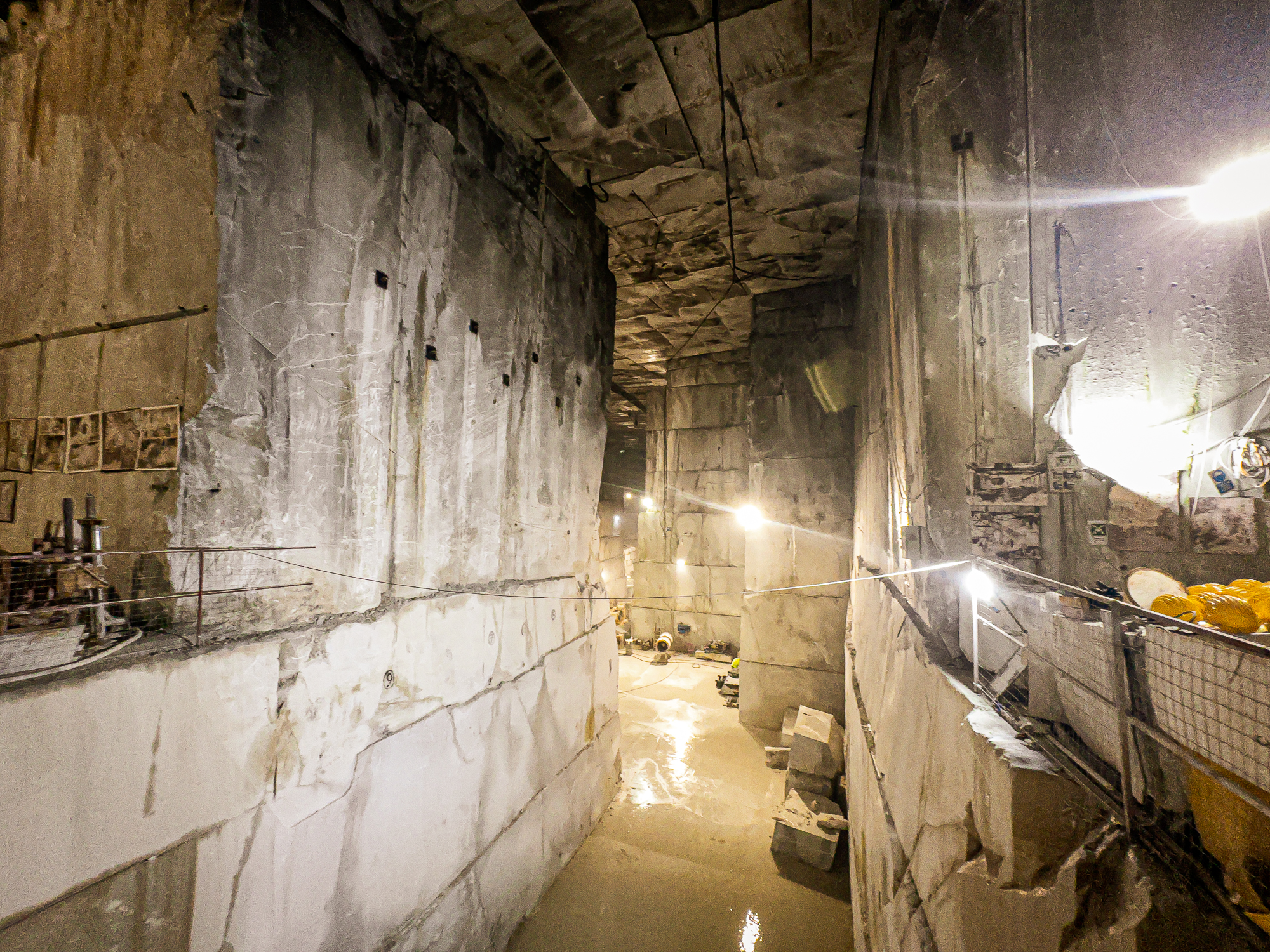 Neben den Abbaugebieten aussen an den Bergen, wir auch in tiefen Höhlen der weisse Marmor abgebaut.